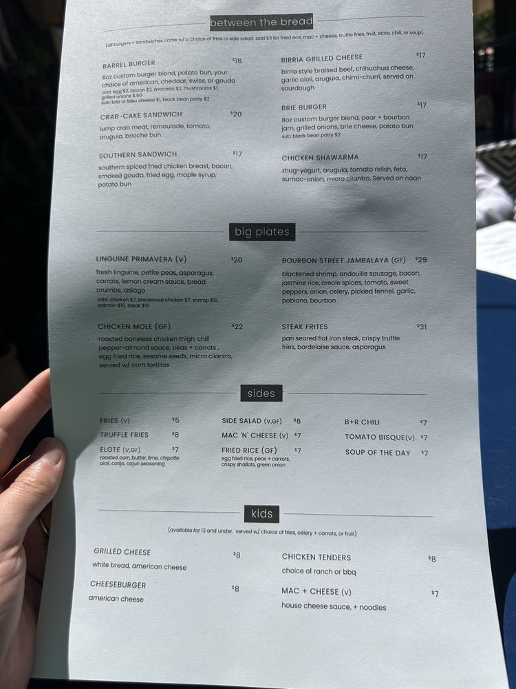 Barrel + Rye is a charming Southern cocktail bar and New American restaurant located in Geneva, IL. With a variety of vegetarian options, full bar, and unique dishes like the pistachio & beet salad and jambalaya, this spot has quickly become a local favorite. The cozy interior and excellent service make dining here a delightful experience. Customers rave about the delicious flavors in dishes like the Brie burger and Birria grilled cheese, showcasing the culinary creativity of the menu. From the welcoming atmosphere to the extensive cocktail selection, Barrel + Rye offers a memorable dining experience for groups, couples, and families alike. Don't miss out on trying their signature dishes and enjoying a night out at this gem of a restaurant!